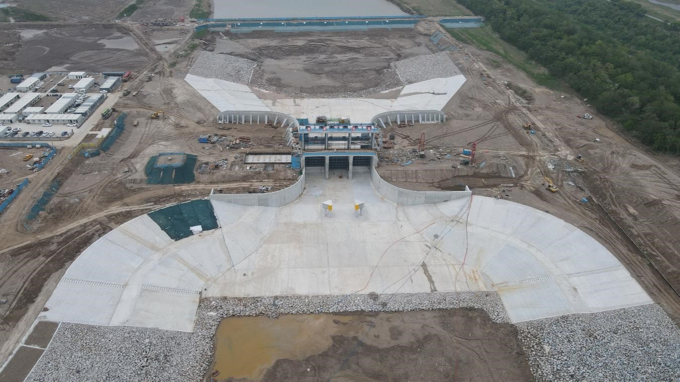 新洋港閘下移工程是國務(wù)院批準的《淮河流域綜合規(guī)劃》《淮河流域防洪規(guī)劃》中明確的里下河地區(qū)水利治理工程措施,被列為2022年、2023年、2024年省重大項目。工程主要建設(shè)內(nèi)容為:新建新洋港新閘1座,新建生態(tài)補水閘1座,拓浚新、老閘間引河8.18千米,拓浚閘下港道1.52千米, 新建引河兩側(cè)封閉海堤14.2千米,以及老閘處理和水系影響處理等。工程批復總概算投資15.39億元,總工期36個月。生態(tài)補水閘及保護區(qū)排水閘工程于2024年9月開始施工,2025年5月10日完成水下工程。工程通水驗收后,可盡快發(fā)揮工程效益。
